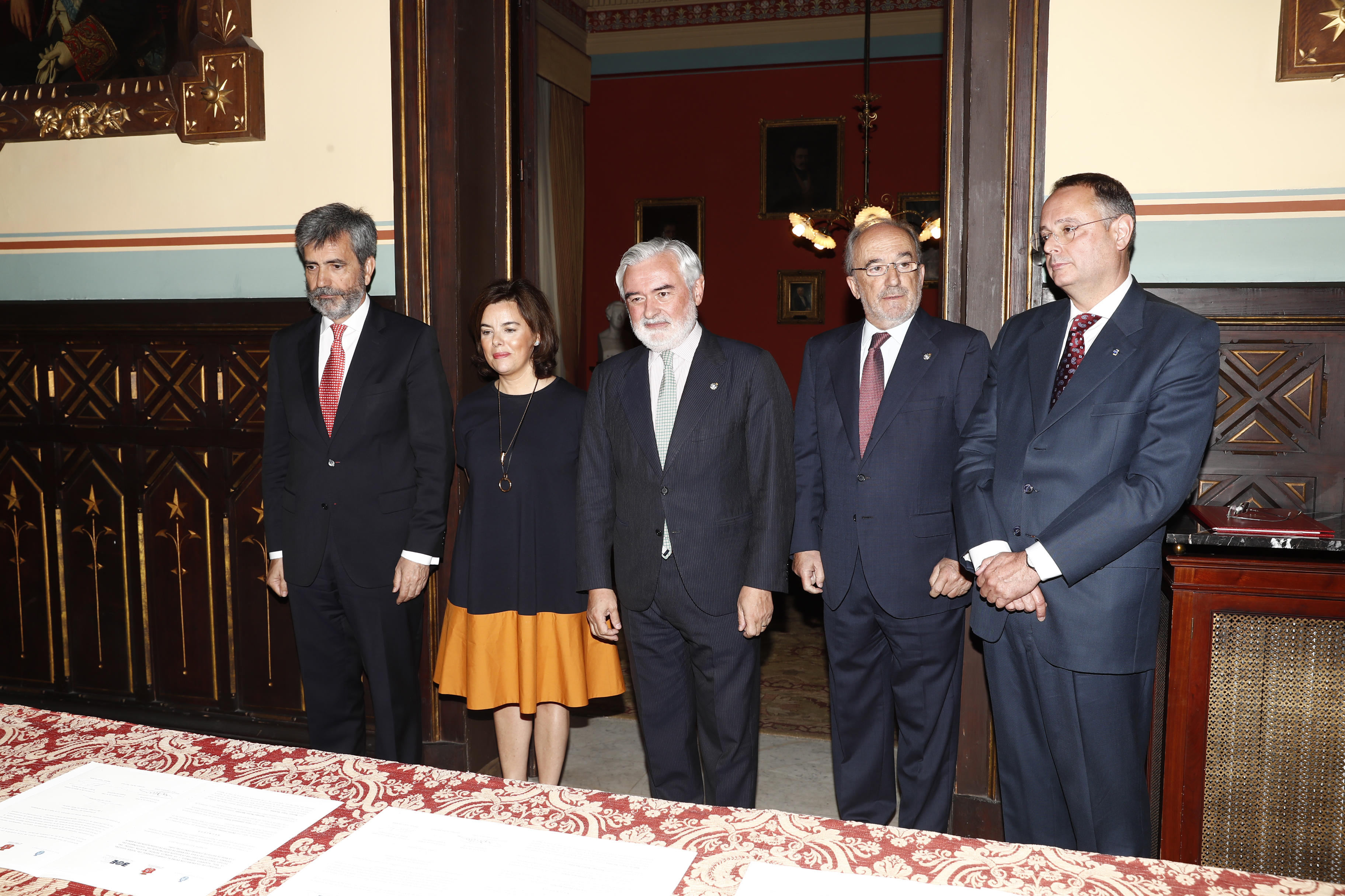 El órgano de gobierno de los jueces, la Real Academia Española y el Boletín Oficial del Estado suscriben un convenio de colaboración. Los usuarios de la base de datos de jurisprudencia accederán a su vez directamente al Diccionario sin necesidad de realizar una búsqueda específica en las páginas web de la RAE o del CGPJ